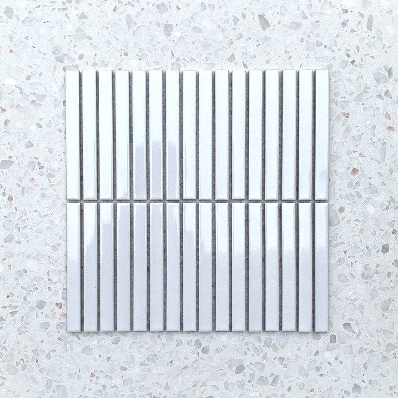 A very popular porcelain and ceramic mosaic style of tiles is the kitkat or finger mosaics. They are often used in a in vertical pattern in a bathroom for a floor to ceiling design.