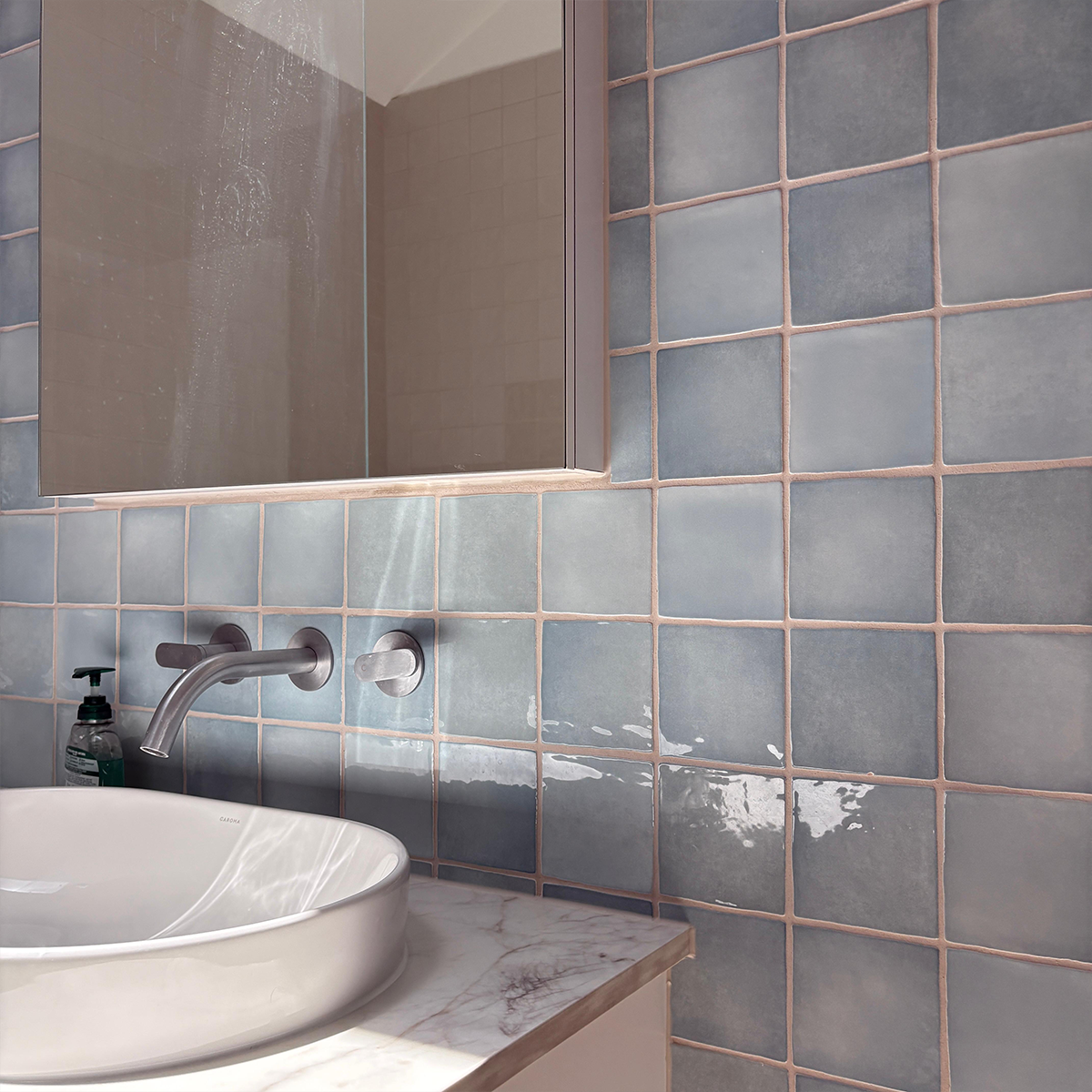 Moroccan Ocean Mix Ceramic is particularly beautiful due to the variation in colour, which is inherited in its surface. As it's clear from the photos, every piece is not exactly the same colour.