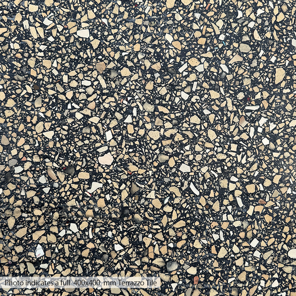 Matera Terrazzo provides a calm and intimate environment with its dark background that makes it suitable for various spaces such as kitchens and bathrooms.